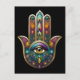 Peacock Colors Hamsa w/ Gold Third Eye Vykort