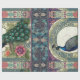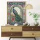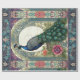 PERFEKT FÖR AVKOPPLING. Elegant Peacock i en botanisk vintage stil med ephemera och Art nouveau gräns på tungviktsförpackning papper. En skarp och färglös målning av en elegant Peacock i fet skuggor med ett krackat struktur, inklusive laxblommor och rosa av lavender rosa. Konst grafiskt designad av internationellt licensierad konstnär och formgivare, Audrey Jeanne Roberts. Copyright.
