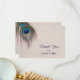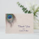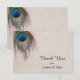 En söt blå, brun och grönt-fågelfjäder finns längst upp till lämnat i det här bröllop-tackkortet. Din anpassningsbar är i linje med blått i den nedre högerna. Bilder och text placeras på en bakgrund av grått och som försvårar färg i fjädrarna. Kortets baksida har en passande bakgrund med en annan anpassningsbar fält. Om du vill kan du bläddra ut texten för att ge skriva åt ditt eget meddelande. Det här kortet matchar Peacock Feather Gräns bröllopsinbjudan i vår butik.