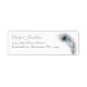 Peacock Feather Newlyweds Returadress Bröllop. Fjädringen är till högerna i en turkoshad och namn och adress till lämnat. Texten kan vara lätt att personlig.