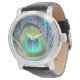 En vacker bild av Peacock Feather på en förbluffande turkos blå grönt bakgrund. Turkobakgrunden ger ut Peacock Feathers blå öga. Foto av Travis L. Lagasse vid Flowstone Graphics.