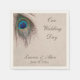 En fågelfjäder dekorerar ett hörn av denna bröllop-cocktail-napkin, med texten "Vår Bröllopsdag" på högerna. Vid grund ligger mitten först i namn och bröllop. Fjäderbilden och luddertexten placeras på en lätt grått än i en utsatt bakgrund. Den här dockan matchar Peacock Feather Gräns bröllopsinbjudningar och andra bröllop-produkter i vår butik.