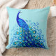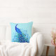Dekorativ kudde i en fantasi-fredsbock med ett lavande svan, i skuggor av djupa turkos och koboltblått, på en mjuk akvatisk bakgrund