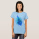T-shirt med en fantasifull påfågel med en praktfull svans, i nyanser av djup turkos och koboltblått, på en mjuk akvafärgad bakgrund