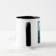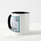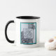 Peacock & Leaf Blk & Whit Ink Turquoise Border. Mugg