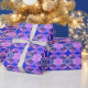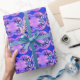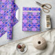 En rosa och lila, parasol, förskönad med en blå påk och blommor, med blå bakgrund. Söt orientaliskt tema.