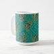 Enjoy your drinks with this glam and ornate royal teal and gold peacock paisley patterned coffee mug with your personalized monogram initial or name. This boho peacock paisley personalized coffee mug with personalized monogram features a hand drawn repeating pattern of peacocks. This peacock pattern is an original pattern made by OhMyStarling!