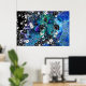 "Peacock Garden Trio" kommer att ge skönhet till alla väggar. Designad av konstnären Julie Borden och baserad på den ursprungliga akrylserien med målningar. Tealerna, safiblues och lila paras perfekt med dessa exotiska fåglar. Detaljer och rik färg med fetstilt svart och vitt gör detta till ett fantastiskt konstverk.