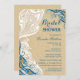 Elegant Peacock och snöre med Art nouveau känsla. Fina Aqua- och tealtoner med vit rullad sidpanel. Bakgrunden är en känslig ton på snöre-blommigten över sandbakgrunden.. Inbjudningskort för möhippan är en del av Peacock Snöre Elegance 2 Collection och matchande artiklar finns i min butik.