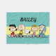 Kolla Lucy, Charlie Brown, Snoopy, Sally och Linus sitta i rad.