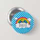 Den här söta Peanuts blå och vita polka-punktsbilden har Woodstock flytande på regnbåge och moln.