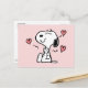 Sprid kärlek med detta förtjusande Peanuts-kort med Snoopy omgiven av hjärtan. Perfekt för att skicka söta hälsningar, dela tillgivenhet eller fira Alla hjärtans dag, detta vykort fångar den tidlösa charmen hos Snoopy och hans varmhjärtade personlighet.