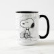 Enjoy your coffee amidst the "noise" of the funny pages! This unique Peanuts mug features a classic sketch of Snoopy sitting calmly, layered over a dynamic background pattern of comic strip sound effects and text. Phrases like "HA HA HA," "POW!", "ARF!", and "LOOK OUT!" are scattered in light grey behind the bold black Snoopy illustration, capturing the chaotic energy of the original comics. With its sleek black rim and handle, this two-tone mug adds a modern, stylish edge to the retro artwork, making it a standout piece for any collector's cabinet.