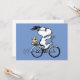 Pedal into smiles and send some classic charm with this adorable greeting card, featuring Snoopy and Woodstock on a bicycle! This vibrant card showcases a delightful line-art illustration of Snoopy, wearing sunglasses, happily riding a vintage-style blue bicycle with Woodstock perched safely behind him. The dashed lines behind the back wheel suggest motion, adding to the playful scene, all set against a cheerful light blue background. This iconic and heartwarming design brings a sense of nostalgic joy and timeless appeal. Perfect for birthdays, thank yous, or just a "thinking of you" message, this card is sure to brighten the day of any fan of Snoopy and the Peanuts gang!