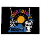 Celebrate a bright and exciting new chapter with this cheerful Snoopy-inspired graduation design bursting with color and optimism. Set against a bold dark background, this playful artwork features a smiling beagle standing beside a vibrant golden sun rising over soft blue hills, symbolizing new beginnings and endless possibilities. Colorful confetti scatters throughout the design, while the uplifting phrase “Your Future Looks So Bright” arcs overhead in fun, multicolored lettering. The whimsical style and joyful energy make this design perfect for graduates of any age, capturing the excitement, pride, and promise of graduation day in a fun and memorable way.