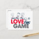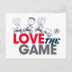 Kolla in Charlie Brown, Franklin, Peppermint Patty och Snoopy som springer och spelar fotboll tillsammans i enhetlig dräkt, över orden: "Älska Spelet".