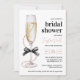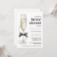 Eleganten "Pearls and Prosecco" Inbjudningskort för möhippan med en svart buske, ett champagneglas och en chic pärlaccent. Perfekt för en snyggt brunch-möhippa.