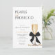 Pearls & Prosecco Black Bow Inbjudningskort för möhippan