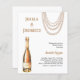En modern, snyggt och glamorös inbjudan till en Pearls- och Prosecco-Möhippa. En vit bakgrund med pärlhalsband och en gyllene flaska av Prosecco. Namn är skrivet med ett modernt handskript i stil. Anpassa och lägg till information om party. 1 lakan = 1 inbjudan tryckt kant till kant.