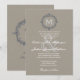 Pebble och Grått Ram Monogram Bröllop Linen Pappra Inbjudningar