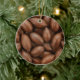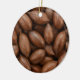 Hög av glansiga bruna pecannötnöt i deras snäckor