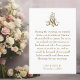 Skapa ett helig-ögonblick på bröllopsmottagningen med vårt Marian Altar Prayer-inbjudningskort. Det här vackert designade kortet inbjudan dina gäster att besöka ett speciellt marinaltare som är uppsatt på platsen för att erbjuda böner och välsignelser för giftermål. Med ett hjärtligt budskap i första hand står det på kortet: "På kvällen hälsar vi er varmt på inbjudan för att besöka vår marinaltare och be oss om en bön när vi går in på denna resa som make och hustru. Elaket till er böner är så mycket för oss, och vi skulle bli hedrade om ni kunde tända ett ljus och er välsignelse för giftermål." Med en elegant guld Marian Kor överst tillför detta kort inte bara en andlig-beröring till firande utan skapar också en meningsfull möjlighet för gäster att delta i den tro och kärlek som förenar er som ett par. Perfekt för par att tittar införliva sin katolska tro i sin bröllopsdag, detta kort är ett vackert sätt att främja heliga ögonblick och fördjupa enigheten bland era kära.