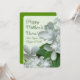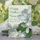 Blommiga Morsdagskort med vackra, vita Pee Gee-hortensiablommor. Designen har gröna nyanser och en svängig skrivstil för att anpassa i två ställen. Perfekt för en kvinna som älskar trädgårdsskötsel, vare sig det är mamma, mormor eller styvmamma. En pappersuppgradering och rundade hörn visas. Ljusgrön bakgrund och mörkgröna blad förstärker naturtemat och får de ömtåliga, vita kronbladen att sticka ut. Köp denna design färdig att skicka, eller välj alternativet för direkt nedladdning.