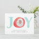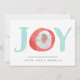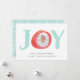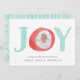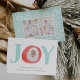 Festivt och vismiskt fotokort med helgdag har ord "JOY" i vattenfärgstryck med fotot inuti brev "0". Anpassa framsidan med anpassningsbarna hälsning och namn och lägg till ytterligare två bilder på baksidan mot ett nordiskt mönster i vit och pastelliserad grönt.