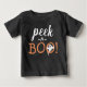 Ta fram din lilla boo till Halloween. Roligt baby, en kostym party, eller bara för att. Svart, vit och orange baby t-shirt har ett söt spooky spöke med det roliga citatet "Peek a BOO!"Happy halloween!