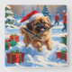 Pekingese Hund i Snö med julklapp Fyrkantig Klocka