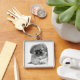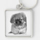 Pekingese Puppy Fyrkantig Silverfärgad Nyckelring