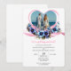Fira kärlek med den romantiska bröllopsinbjudan! Med en hjärtformad foto ram, rosa band och blommigtar med vattenfärg är det perfekt för intima eller trädgårdsbröllop. Lägg till foto och information för personlig beröring