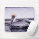 Profilen på en pelikan - den bruna pelikan i originalfotografiet av MaeFlowers på denna Mousepad glider längs vatten i en kanal på Floridas Bukt Kusten. På baksidan av en båt visas de skakande reflektionerna från det blå vatten. Fotot är i skuggor av blått, mjukt grått och , med en gult på pelikans huvud.