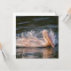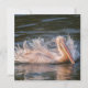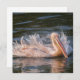 En majestätisk pelikan flyter omsorgsfullt på vatten, dess sömnfjädrar som lyssnar med droppar när den häftigt skakar av resterna från en nyligen gjord dyva. Kontrasten mot den djupa svarta bakgrunden accentuerar elegansen hos de droppar från vatten som fångats i mitten av luft och skapar en fängslande naturscen i rörelse.