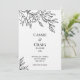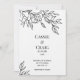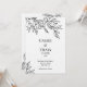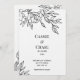 En minimalistisk bröllopsinbjudan med en hand plockade-linjekonst som illustrerar en ro-blomma med liten löv, i svart bläck mot en helt vit bakgrund på en lyxig, heavyweight mjuk texturerad importerat inbjudan papper. Andra, mer ekonomiska finns tillgängliga från projektionsyta till glansig avsluta.