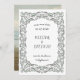 Vattenfärgat havsskum grönt färg bakom löst bläck stil ram, antydningar av snäckor och barocka ornament i vitt illustrerade doodle stil. Anpassa med en klippa, foto på baksidan och valfri fyrkantig kod