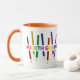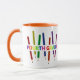 Detta är ett mugg för en fjärde klass-lärare med flera färgpennor och ord 4 Klass över pennorna. Detta skulle göra en underbar eftergymnasial, lärarkänning eller avslutning av årets gåva.