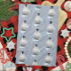 En söt baby penguin-chick med snö och snöflingor i en ljusblå grått-bakgrund som alla dras i en art nouveau stil.