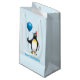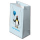 Söt penguin med en ballong på presentpåsar till sommarens födelsedag bassäng party.