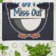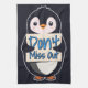 penguin don’t miss out sign: A penguin-shaped sign with the words "Don't miss out" written on it. The penguin's simple shapes, balanced silhouette, and clear facial expression convey warmth and approachability. The sign is positioned for easy readability, with generous negative space and a legible type style. The overall tone is upbeat and inviting.