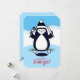 Cute penguin med gaffel och knivar, isfiske efter en helgdag på julen till/från "köket av"-kort för köksmästare, catering, restauranger och säljare av skaldjur för att lägga upp sin lista med hemgjord matlagning och bakning som julkakor, kakor, bagage, såser och vildsint mat, slitsar och sötsaker.