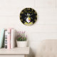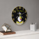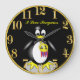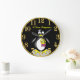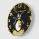 En svart och vit tjock Penguin. Han har en gult nummer 1-utmärkelse på sig för första ställe.med en svart bakgrund och en guld-trim utanför och gyllene siffror med ställe för din text för ditt personliga namn den här klockan.