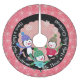 Penguins Holly Jolly Jul träd-kjolen i helgdag har en vacker design med ett vitt snöflingor på rosa, ett svart ring, ett rosa med vitt polka dots, snöflingor med vitt, tre adjektiv med svettare, vinterhattar, isskal och halsdukar, och vit text med texten "Ha en Holly Jolly-jul!