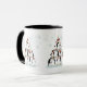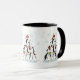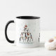 Julen mugg har en roligt, en komisk illustration av pingviner som är utklädda till jul och som står på varandras axlar för att göra Julgran till en komplett form med en stjärna överst. Originalteckningar. Copyright Leah Wiedemer.