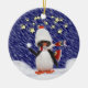 mediemixen med fotografi och digital konst med denna söta utomhusscen med en penguin med en strimlad, flerfärgad scarf och vit sticka-hatt som håller en snöboll på en rund ornament. Fyll i fälten Mallen med ord för texten på baksidan eller klicka på Anpassa den! och markera teckensnittet stil, storlek och färg. När du anpassar dig kan du också ändra bakgrunden till färg genom att markera ett färg under "Redigera" i Zazzle färg palatte.