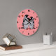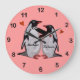 kärlek med den här Penguin Hearts designklocka! Bild som illustrerar ett penguinpar i kärlek och hjärtan. Anpassa med din favoritbakgrund färg och lägg till namn för en unik gåva till Alla hjärtans dag, bröllop, årsdagar eller andra särskilda tillfällen.