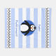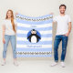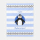 Den här mysiga filtrets framsida har en lekfull penguin-bild på blå och vit strimlad bakgrund, och det är redo för dig att anpassa dig med namn. Rubriken är "Spelande penguin!" i blått, eller så kan du anpassa även detta. Över och grund i filten finns en upprepande mönster av samma kindpenguin. Underbar för en babydusch, en välkommen nyfödd gåva, jultomar och födelsedagar.