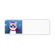 En hedervärd tecknad penguin med en lila sjal och en lila och rosa sticka hatt i blå botten med snöflingor