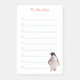 Penguin-fågel och kalligrafi på vita fodrade anteckningar.