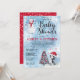 Tvättfärgspenguin i en tomathatt och snögubbe med snö som faller runt "Drive by Baby Shower". Design är röd, grått, dammblå, svart och vit. Anpassa helt enkelt dina duschdetaljer. Baksidan har ett snöfall mönster över en röd bakgrund. Sammansatt av Helgdag hörnmönster.